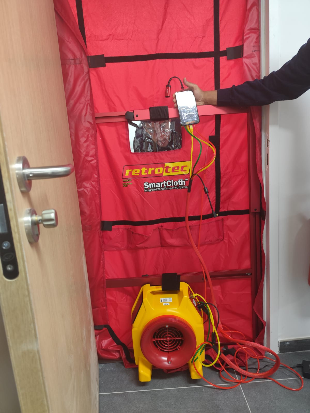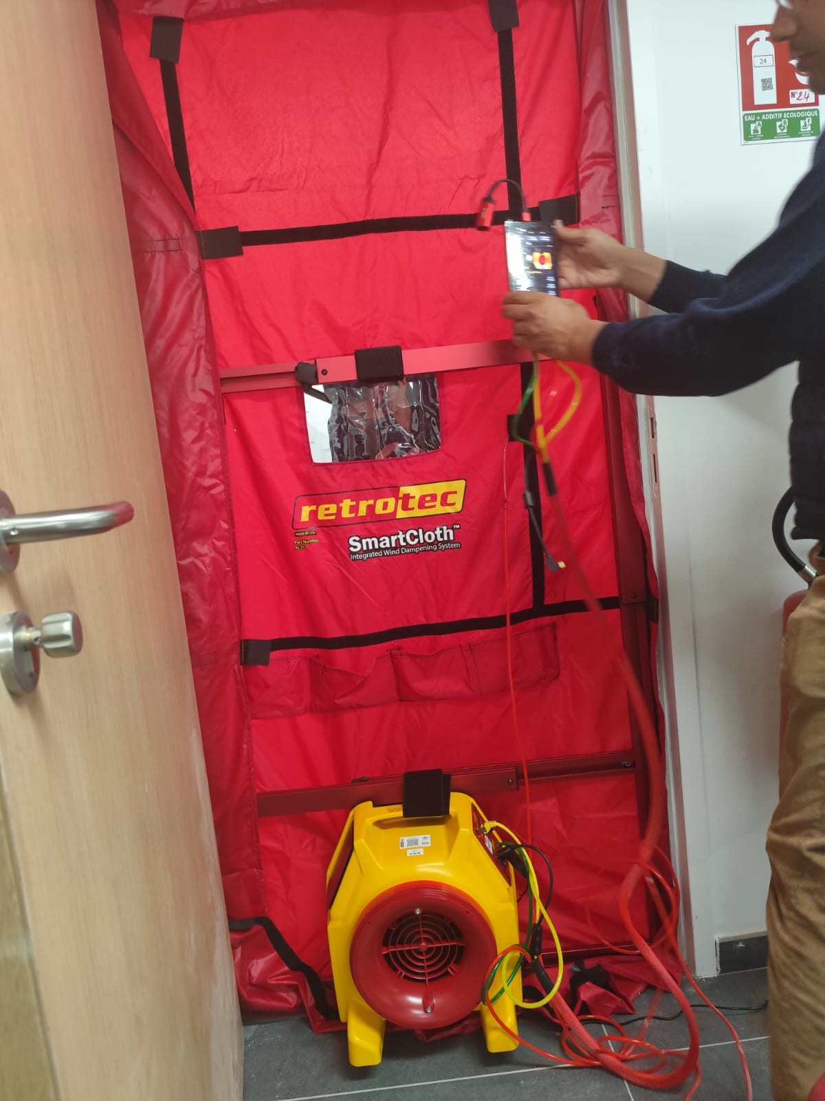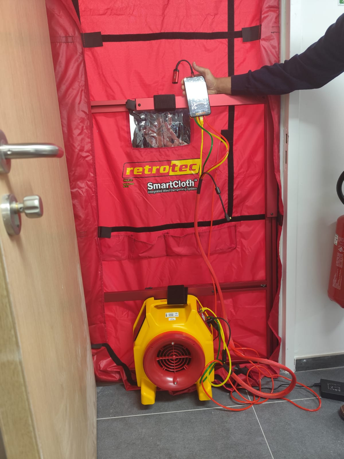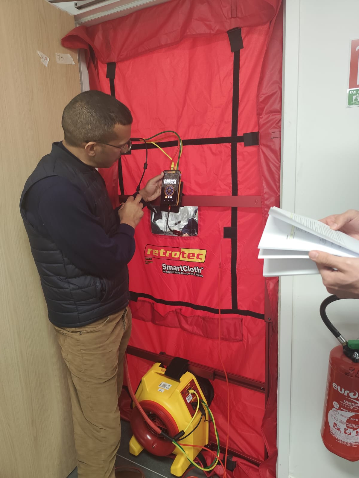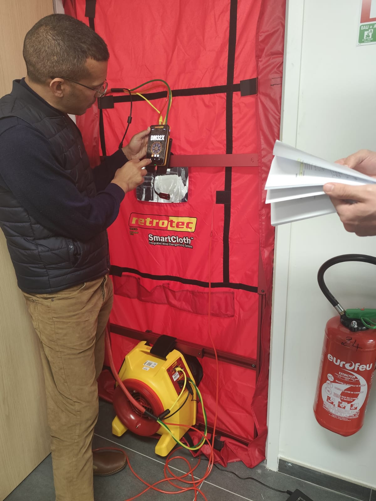 🔍 La semaine dernière, nos étudiants en bac+4/5 ont expérimenté le test d’étanchéité à l’air par porte soufflante (Blower Door Test) : un outil essentiel pour mesurer la qualité de l’enveloppe d’un bâtiment et détecter les fuites d’air invisibles.