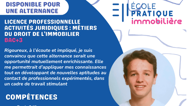 🎓 En tant qu’école de la CCI Aix-Marseille-Provence, nous mettons en place un suivi régulier entre le tuteur entreprise et le responsable de programme, et une formation de qualité, alliant droit et pratique de l’immobilier.