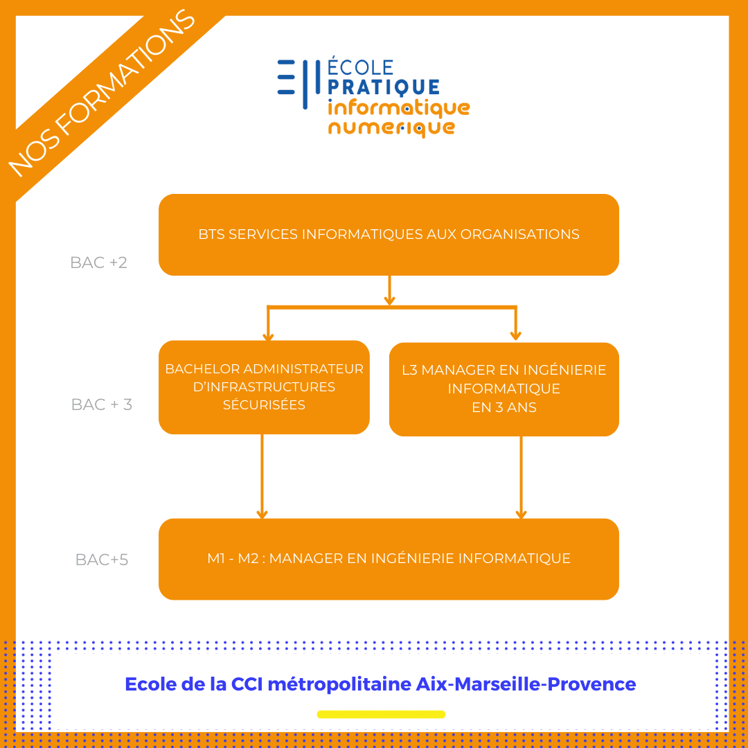 🚀 À l’Ecole Pratique, le M2i – Manager en Ingénierie Informatique propose deux spécialisations : Lead Développeur ou Sécurité, Systèmes & Réseaux.